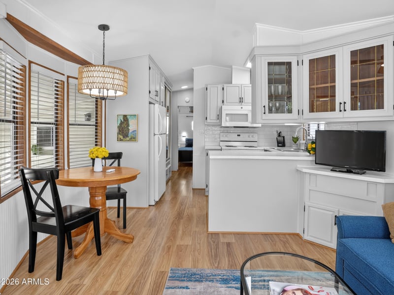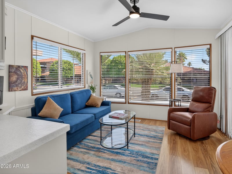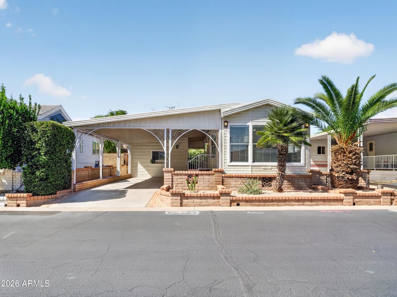 Listing details for 111 Greenfield Rd #631, Mesa, AZ 85206 : Welcome to one of the best values in Mesa, located in the highly sought-after 55+ community of Greenfield Village. This beautifully maintained home offers the rare advantage of owned land with no lot rent, maximizing long-term value. Inside features a bright open layout with vaulted ceilings, wood-look flooring, and a clean, move-in ready feel. The kitchen offers ample cabinetry, subway tile backsplash, and built-in appliances. Enjoy resort-style living with a heated pool, indoor and outdoor spas, pickleball and tennis courts, fitness center, and a vibrant calendar of live entertainment, events, and social activities. This property offers an exceptional combination of comfort, lifestyle, and value in a vibrant and active community.