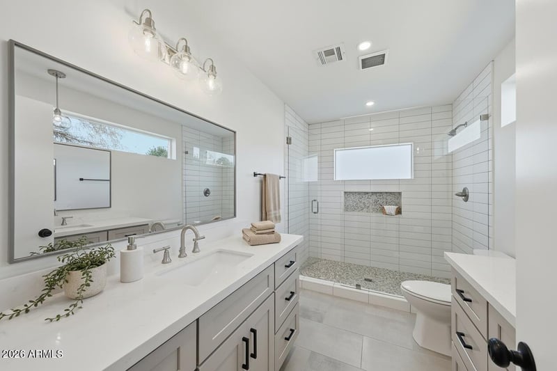 Listing details for 1117 Fern Dr, Phoenix, AZ 85014 : Welcome to a home that effortlessly blends timeless character with thoughtful modern updates. Built in 1948, this beautifully remodeled 3-bedroom, 2-bathroom residence retains its old-fashioned charm while offering all the comforts today's buyers appreciate. From the moment you arrive, the inviting grass-lined front yard sets the tone, complemented by a well-designed carport and a charming paver patio—perfect for morning coffee, evening chats, or welcoming guests with ease. Inside, the home feels light, airy, and warm, with a layout that honors its original design. Light gray tile flooring flows throughout, paired with recessed lighting that brightens every corner while maintaining a cozy, classic vibe. The kitchen is both functional and stylish, featuring granite countertops, a gas stove, and a center island that anchors the space beautifully. A standout wet bar with a wine fridge adds a special touch - ideal for entertaining, hosting holidays, or simply enjoying a quiet night in. Storage is abundant throughout the kitchen, making organization effortless. Just off the kitchen, the inside laundry room offers convenience along with extra cabinetry for even more storage. One of those everyday features you'll quickly appreciate! The primary bedroom is a true retreat, offering generous space, elevated windows with shutters, and a walk-in closet. The ensuite bathroom feels like a private escape, complete with dual vanities and a stunning walk-in tile shower filled with natural light. Step outside to a backyard designed with intention. A dedicated sitting area invites you to relax or entertain, while the grassy yard adds room to play, garden, or unwind. The cherry on top is the thoughtfully designed workshop - perfect for hobbies, projects, storage, or creative space. This home is a rare find: remodeled yet full of soul, functional yet full of charm. It's a place that feels welcoming, well cared for, and ready to be loved for years to come. Don't let this one slip by!