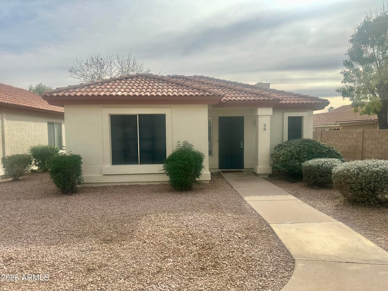 Listing details for 1120 Val Vista Dr #28, Gilbert, AZ 85234 : This Charming corner lot offers Quiet Enjoyment! Step into this updated HOME with fresh paint. Enjoy Entertaining in the Great Room around the Cozy Fireplace. Kitchen was updated in 2022 and has a breakfast bar and eat in dining room area off the great room. Ceiling fans and updated lighting fixtures throughout. Master bedroom offers a separate exit to enjoy the covered patio and is located at the back of the property for your quiet enjoyment. Sit out on the patio and enjoy the Beautiful Arizona Weather. This Charmer is a must see so put this one on your list to see. Enjoy the Pool and area offers alot of shopping and dining..
