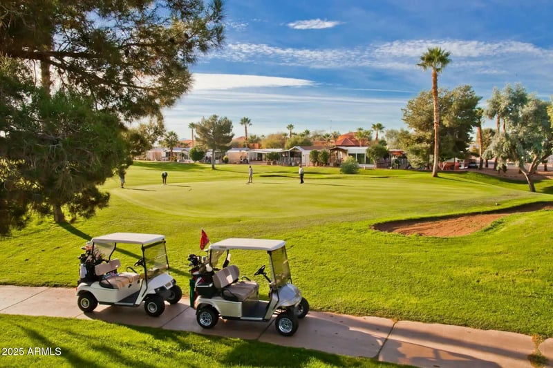 Listing details for 11201 El Mirage Rd #23, El Mirage, AZ 85335 : Rare chance to own both the home and land in one of the Valley's top gated 55+ communities! This furnished home sits on one of the few fully owned lots—NO LAND LEASE!—and includes a brand new HVAC unit and roof coating. Everything you see, all furniture and furnishings, conveys. Enjoy your new home's quaint, peaceful backyard perfect for relaxing or entertaining. Live the resort lifestyle with golf, pickleball, tennis, pools, and more. Ideal for full-time or seasonal living. This is truly low-maintenance luxury at its best!