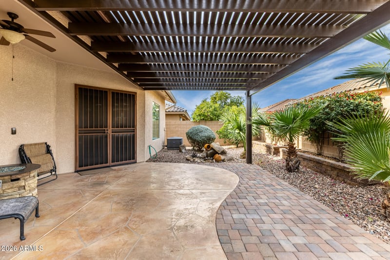 Listing details for 11208 Ocaso Ave, Mesa, AZ 85212 : Welcome to a home that brims with charm and character at every turn! This energy-efficient gem displays a 2.5 car garage, low-care front yard, and a pavered courtyard. The home has 30k of owned solar! Last year's electric bill was less than $750! Updated kitchen offers a pantry, ample cabinets, stainless steel appliances, granite counters, and a center island with a breakfast bar. Main retreat has wood-look tile floors, plantation shutters, an ensuite with a walk-in Kohler jetted tub and walk in shower, and a walk-in closet. Double doors lead to the flexible den, perfect for an office or craft room. The extended covered patio and pavers make a perfect backyard retreat. Owner has put over $75k in the home since he purchased 2 years ago. You won't be disappointed!