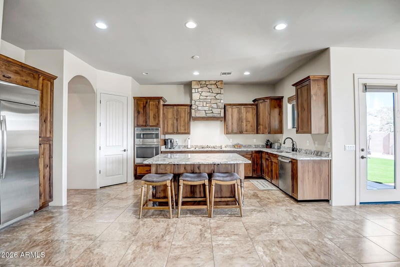 Listing details for 1121 Saddle Mountain Rd, Phoenix, AZ 85086 : Builders exceptional custom estate is now available. Nestled on over 1.25 acres of land w/ breathtaking mountain views to the E & SE. State land is just a stone throw away so you'll enjoy added privacy, open space, & endless opportunities for outdoor recreation right outside your door. Designed for both comfort & style, this spacious property offers 6 bedrooms & 4 bathrooms, 2 full sized kitchens, 2 laundry rooms & so much more providing plenty of room for family, guests, or multi-generational living. Step outside to a truly exceptional backyard retreat featuring luxury turf grass, heated spool for year round relaxing & sweeping mountain views that create a stunning natural backdrop. Clear skies, catch a glimpse of city lights & mountains. Oversized 3 car garage is 32.6X28 ft. Additional features: 3 part shared well, Motorized Hunter Douglas Blinds, No Hoa, Retaining wall to maximize backyard elevation and views, Surround sound w speakers in main home and back patio. Must see photos. Builders home now offered for sale. Total square footage is both the main home and the guest home. Main home is 3193+ and guest home is 902. The main home is connected to the guest home by wrap around patio/breezeway. The guest home is almost brand new (never lived in). Come see this exceptional property tucked away at the end of the private easement. Property has excess land off to the south (and west) to expand, develop additional structures, create recreational space, or design more multi-generational compound.
