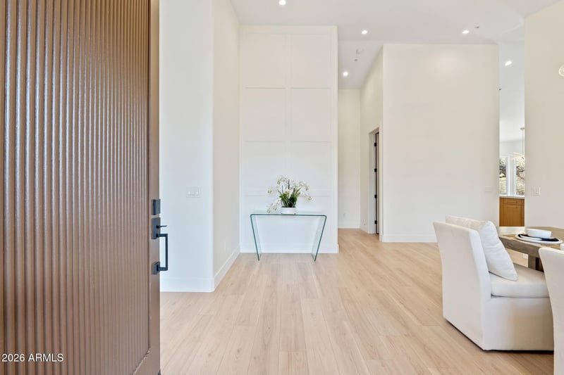 Every major system has been thoughtfully replaced, including plumbing, electrical, lighting, cabinetry, fixtures, irrigation, and premium interior finishes. The result is a turnkey Scottsdale home that feels entirely new from the inside out—ideal for buyers seeking quality craftsmanship, modern design, and long-term peace of mind. Soaring ceilings and expansive walls of glass flood the home with natural light, highlighting wide-plank flooring, custom 8-foot interior doors, and a flowing open-concept floor plan designed for modern Scottsdale living. Three contemporary fireplaces anchor the family room, primary suite, and a newly created conversation lounge, while oversized sliding glass doors create seamless indoor-outdoor living, perfect for entertaining and everyday enjoyment.