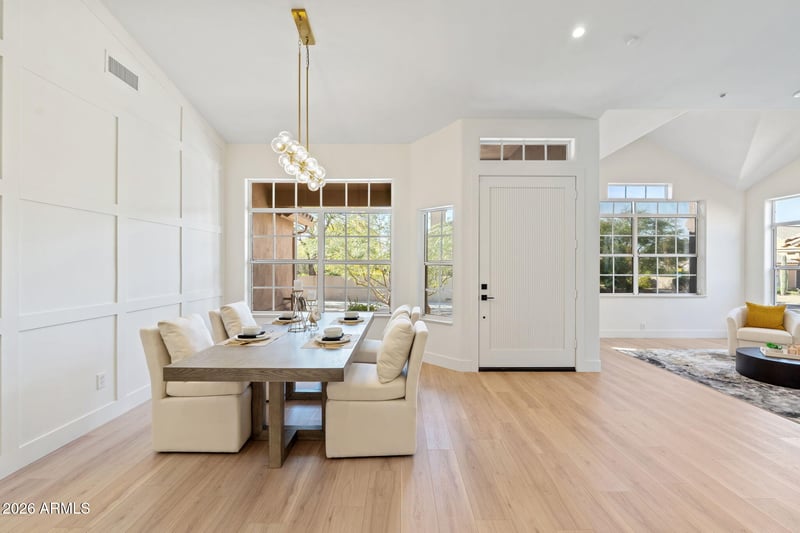 The chef's kitchen serves as the heart of the home, featuring a large quartz island, top-of-the-line appliances, and abundant custom cabinetryideal for both casual living and hosting guests. The expanded primary suite retreat offers a spa-inspired bath with a freestanding soaking tub, refined finishes, and a beautifully designed walk-in closet, delivering the comfort and elegance buyers expect in luxury real estate in Scottsdale.