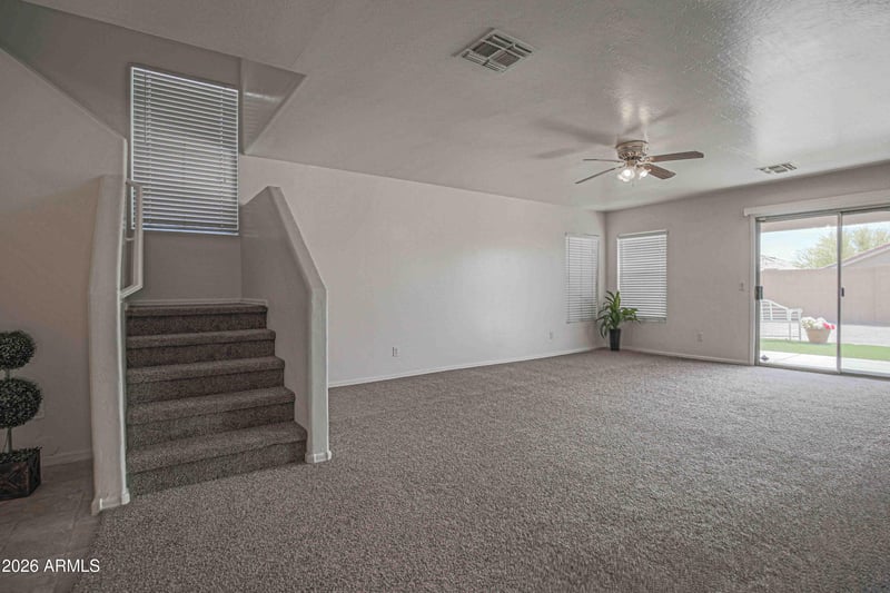 Listing details for 11239 Campbell Ave, Phoenix, AZ 85037 : Spacious and refreshed 4-bedroom home with a desirable layout featuring the primary suite downstairs! This room includes a walk-in closet as well! New carpet and fresh paint inside and out! Open kitchen off the great room offering new appliances and roomy pantry space. Brand new stainless steel refrigerator stays! Upstairs, enjoy an oversized loft and a convenient laundry room that includes the washer and dryer! New vanity in guest bath! Secondary bedrooms also have walk-in closets! HVAC is only a year old! Step outside to a covered patio and easy-care yard! Perfect for low-maintenance living and a move-in ready home! Directly across the street from a large, lush park! Plus, a dog park is just down the street! Close to sports, shopping, and schools! Make this your HOME today!