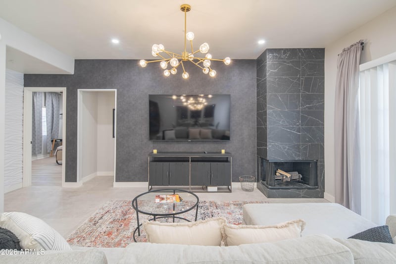 Listing details for 11333 92nd St #1075, Scottsdale, AZ 85260 : Rare & tastefully remodeled ground-level condo in a resort-style community in Scottsdale & easy access to the 101. Endless designer upgrades in this open floor plan include reimagined kitchen & bathrooms, quartz countertops, chic wallpaper, new SS appliances, custom cabinetry, large 30x30 format tile, brand new HVAC, 9' ceilings, modern tile accented fireplace, built in bar, custom light fixtures and LED ambiance lighting throughout, with a spacious and stylish, luxury feel. Covered patio is steps away from the resort community with amenities boasting 2 heated pools/spas, tennis court, fitness center, BBQ's, outdoor fireplace & lush landscaping. Prime location less than a minute away from restaurants, shopping, amenities and Shea Hospital/healthcare.
