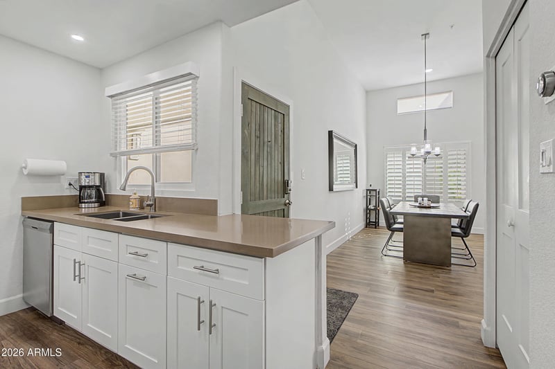 Listing details for 11333 92nd St #2091, Scottsdale, AZ 85260 : STUNNING UPDATED FINISHES IN THE HIGHLY SOUGHT AFTER MISSION DE LOS ARROYOS! This spacious 2B/2BA floorplan boasts a generous 1,294 sqft, soaring 12ft ceilings, & ALL NEW WINDOWS throughout! FULLY LOADED with modern finishes, featuring large wood-look LVP floors, soft-close shaker cabinets & quartz counters in both kitchen & baths, stainless appliances, tiled kitchen backsplash, 6'' baseboards, plantation shutters & newer fixtures/lighting! Relax under the gorgeous NEW pergola on your private balcony, overlooking the lush grassy courtyard. Resort-style amenities offer 2 pools/spas, fitness center, tennis court & clubhouse! Prime Scottsdale location just minutes from 101 freeway, desirable shops/restaurants, Scottsdale Bike Path, Phoenix Open, Barrett Jackson, & more! Don't miss this one!