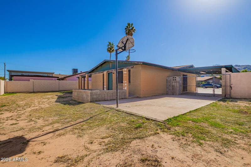 Listing details for 1136 Caldwell St, Phoenix, AZ 85042 : Fantastic opportunity to own this charming 3-bedroom home in Phoenix! A fully fenced property that provides a carport parking. Be greeted by a formal living room paired with soft carpet! Continue onto the seamlessly flowing dining & family room with French doors to the back. The kitchen boasts an SS gas range & refrigerator, ample cabinetry & counter space, and a peninsula w/breakfast bar. Neutral palette creates an inviting atmosphere, complemented by tile flooring in all the right places. The primary bedroom includes a powder room for added comfort. Laundry room with cabinetry. Check out the spacious backyard with a covered patio to relax or enjoy BBQ! With your creative ideas, you can make it a complete outdoor living space. Plenty of potential! Excellent location! Make this gem yours!