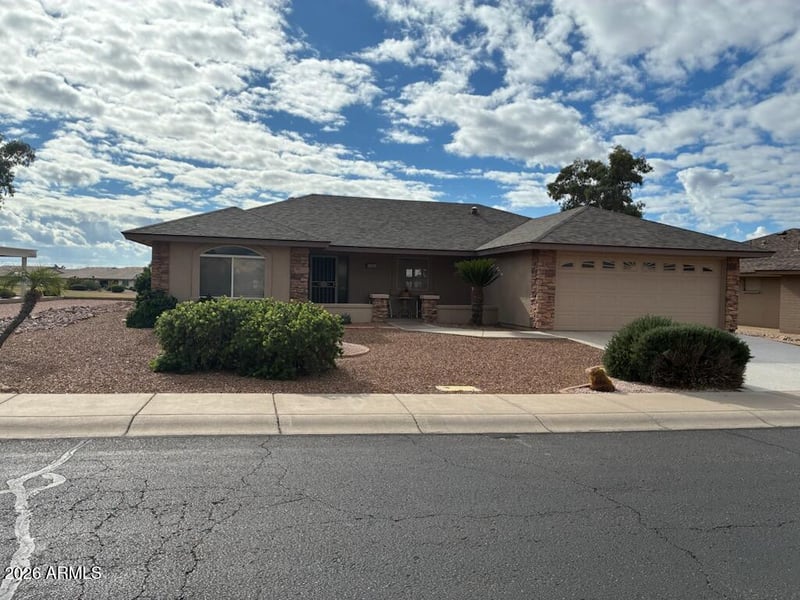 Listing details for 11365 Keats Ave, Mesa, AZ 85209 : GOLF Course home, with 2 Bedrooms, Den & 2 Baths. Open concept living area with arch ceilings & open Kitchen provides you with great entertaining space. Plantation shutters, new shower, newer roof, AC unit, HWH are some of the updates on this home. Add your touch & you will love this home. Located on a short par 3 [Superstition #5] with great views. This Resort has low HOA annual fee of $926 with all the activities you could possibly need, 2 swimming pools, 2 exercise areas, softball field, pickleball & tennis courts, woodshop, 3 nine hole golf courses...ETC.