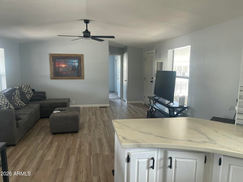 Listing details for 11411 91st Ave #122, Peoria, AZ 85345 : ON LEASED LAND: Don't miss out on this absolutely stunning remodeled 2 bedroom 2 bath 1997 Redman manufactured home. Primary bath has custom walk in shower. Primary bedroom features walk in closet. 2nd bedroom has entrance to hall bath. Kitchen is elegantly updated with added kitchen island. Updated lighting throughout. Front porch to enjoy your morning beverage. Fenced area for your fur babies. 1 Year home warranty. Make an offer asap to pick the exterior color of your home. Located in highly sought after Casa Del Sol West, a 55 plus age restricted gated resort style community. Featuring pool, spa, billiards, putting green fitness, laundry. Lots of activities.