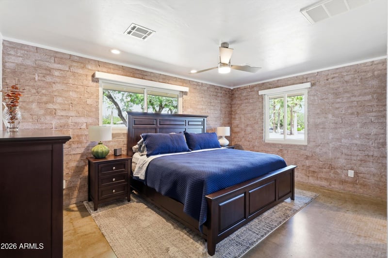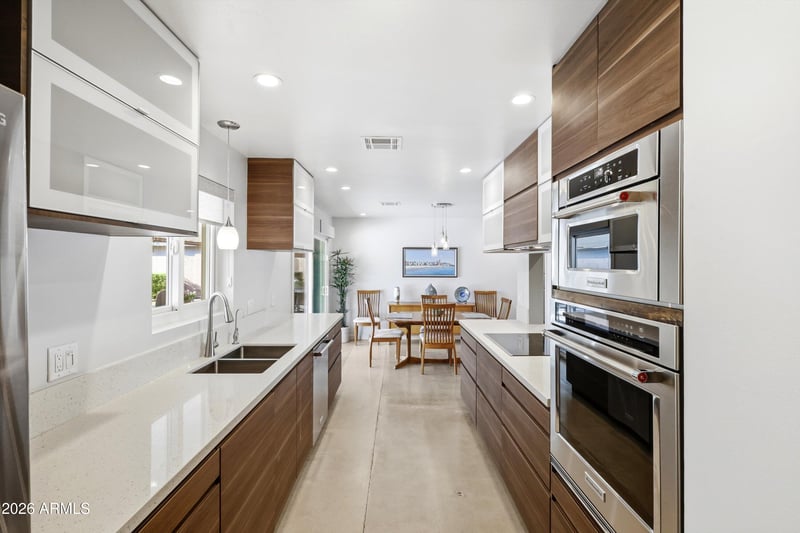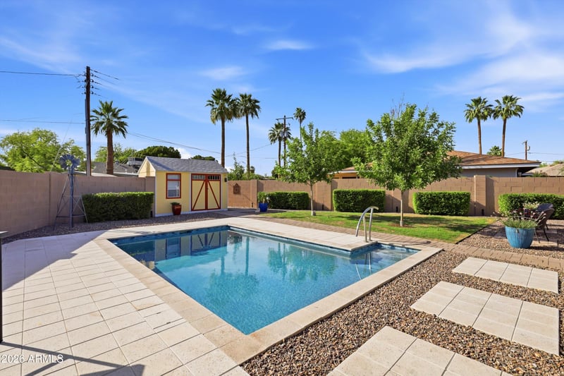 Listing details for 1142 Vermont Ave, Phoenix, AZ 85013 : Mid-century modern home in the Pasadena neighborhood of Central Phoenix, originally built in 1956 and thoughtfully remodeled with permitted updates. The architecture stays true to its roots with clean lines, exposed block construction, and an open-concept layout, while extensive upgrades throughout provide long-term value and functionality. The kitchen anchors the main living space and is designed for both everyday living and entertaining, featuring walnut cabinetry with full-extension drawers, quartz countertops, a GE Profile induction cooktop, and a KitchenAid convection oven and microwave installed in 2024. Custom, hand-finished doors and cohesive cabinetry details carry throughout the home. Major system improvements include a new roof in 2023, Anderson windows installed within the last years, updated interior plumbing and sewer lines, and a full sewer line replacement to the alley in 2022. The home was fully rewired to current code with an updated electrical panel and includes a whole-house surge protector. The HVAC system is approximately eight years old, professionally serviced twice per year, and still carries remaining warranty coverage. The primary bedroom and living room feature remote-controlled shades, with the living room set up for Alexa integration. Additional upgrades include new exterior doors, updated lighting, new outdoor outlets, and drip and irrigation systems on timers. The backyard has been fully transformed with professional landscaping, a private pool with gas heater, a covered patio, and a 12x10 shed for additional storage. The front yard has also been refreshed to enhance curb appeal. Located near the Melrose District with convenient access to the light rail, shopping, dining, and everyday amenities including Uptown Plaza, The Henry, AJ's Fine Foods, and the Phoenix Public Library, this home offers a balance of architectural character and modern updates in a well-established Central Phoenix location.