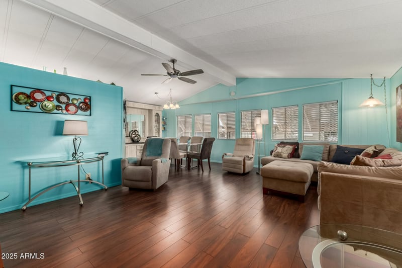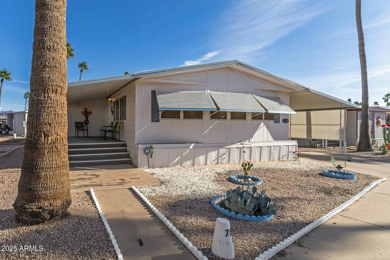 Listing details for 11425 University Dr #75, Apache Junction, AZ 85120 : Spacious double wide fully furnished and updated with all of the finishing touches! Relaxed open floor plan with gorgeous flooring, tasteful paint colors, and updated appliances. THREE bedrooms with walk in closets and two updated baths with walk in showers. Not one, but two covered decks with mountain views and an orange tree in the back yard. Covered parking and storage shed for projects. Active adult community offers premium amenities to include clubhouse, pool table, laundry facilities, heated pool, spa, dog park, and library. Enjoy potlucks, holiday parties, dances, happy hour, bingo, water and aerobic exercise, pickleball, and so much more! Washer/Dryer and all appliances included.