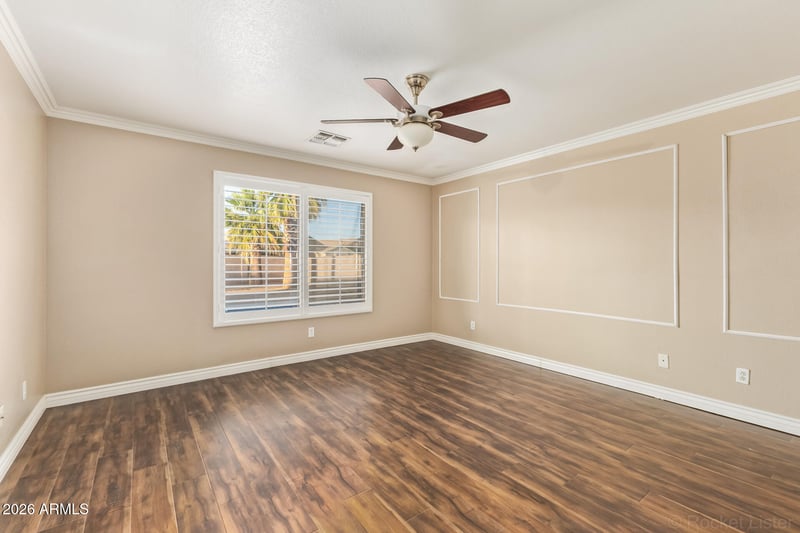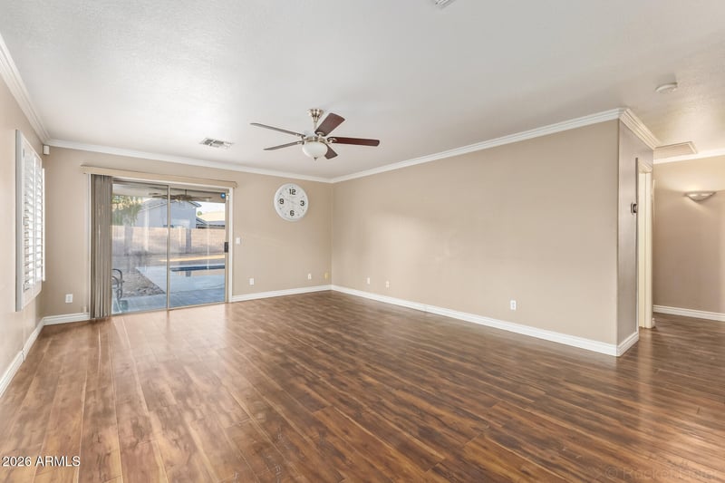 Listing details for 11450 Virginia Ave, Avondale, AZ 85392 : Great opportunity in Crystal Ridge with a private pool! This 3-bedroom, 2-bath home features a 2-car garage, RV gate, and low-maintenance landscaping. Inside, the home offers plantation shutters, natural light, crown molding, neutral tones, and wood-look flooring. The spacious living room includes sliding glass doors leading to the backyard. The kitchen features granite countertops, stainless steel appliances, tile backsplash, pantry, ample cabinetry, and a center island with breakfast bar. Main room includes a walk-in closet and private en-suite bathroom. Step outside to a large backyard with a covered patio and pool, perfect for entertaining or creating your ideal outdoor space. Conveniently located near schools, parks, shopping, dining, and freeway access.