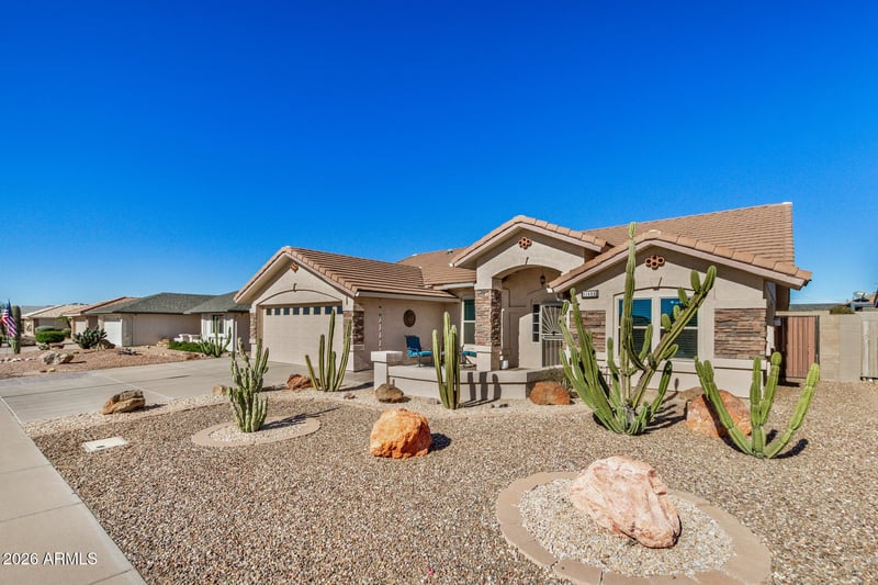 Listing details for 11456 Monte Ave, Mesa, AZ 85209 : Welcome to your new home in the sought-after Sunland Springs Village! The beautifully manicured landscape, inviting courtyard, and 2.5car garage w/attached storage & epoxy flooring are just the beginning. Inside, you'll be charmed by a blend of style and modern comfort, featuring wood-look flooring, abundant natural light, and neutral tones throughout. The gourmet kitchen boasts staggered cabinets with crown molding, quartz backsplash & countertops, built-in appliances, and an island with a breakfast bar & dining area. The serene main bedroom features a private exit for convenience, a walk-in closet, and an ensuite with double vanities. The den is ideal for an office or a quiet retreat where you can relax. Guest bedroom suite split from the primary with it's own bath. Out back, you'll - find a cozy covered patio, well-laid pavers and a nice space for entertaining. Don't forget to visit this welcoming adult community's pool, spa, golf, tennis court, and other amenities to fill your days with fun! Hurry up, this one won't last!