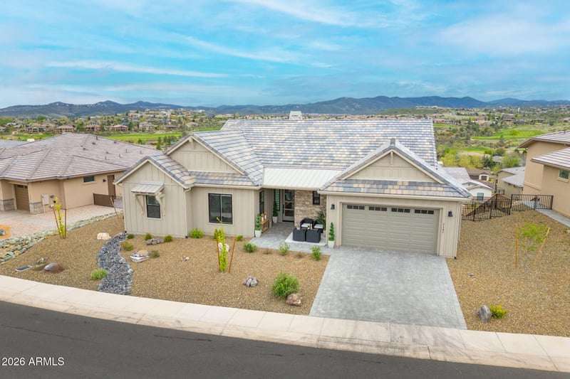 Listing details for 1147 Lakeview Dr, Prescott, AZ 86301 : Welcome to a truly spectacular home nestled within the exclusive, gated community of Solstice Ridge II at Prescott Lakes. This luxurious, like-new single-level residence epitomizes high-desert living, offering breathtaking, panoramic views of the manicured golf course and surrounding mountains. Spanning 2,525 square feet, this meticulously designed home provides both elegance and comfort. The open-concept design seamlessly connects the great room to the gourmet kitchen, making it ideal for both daily life and hosting guests. The great room features a cozy gas fireplace and flows directly onto a large deck--perfect for al fresco dining and taking in the impressive views. The chef's gourmet kitchen is a true centerpiece, boasting an enormous central island, an abundance of additional custom cabinetry, and top-of-the-line Bosch stainless steel appliances. The home layout includes three bedrooms and three bathrooms, along with a dedicated office space that offers the flexibility to serve as a potential fourth bedroom. The generously sized primary suite is a private retreat, featuring a spacious walk-in closet and a luxurious dual-vanity sink arrangement in the primary bath. Convenience is enhanced by a large laundry room equipped with a utility sink. Architecturally designed to maximize natural light and views, the home features windows galore throughout. The exterior is equally well-appointed, with a tastefully landscaped front and backyard, the latter being fully fenced. A three-car garage provides ample storage and parking. Beyond the features of the home itself, the location is unbeatable. It is centrally situated near downtown Prescott, offering easy access to the area's best shopping, dining, and entertainment. Residents of Prescott Lakes enjoy a secure, amenity-rich, low-maintenance lifestyle, with access to unparalleled community features, including: Indoor and outdoor swimming pools A state-of-the-art fitness center A private restaurant and bar Tennis and pickleball courts A private, members-only golf course