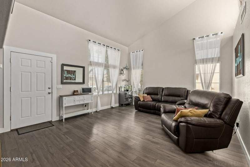 Listing details for 11505 123rd Ln, El Mirage, AZ 85335 : COMING SOON in El Mirage! Beautifully upgraded 4 bed, 2.5 bath home offering 1,961 sq ft on an oversized lot with rare RV parking and RV gate. Expansive concrete slab provides space for RV, boat, or extra vehicles. Backyard retreat features a sparkling Pebble Tec pool with waterfall and full-length covered patio perfect for entertaining. Fresh interior paint, updated kitchen with granite countertops, and new carpet and flooring upstairs. Major upgrades include roof (2020), exterior paint (2021), new A/C (2022), garage opener (2022), and water heater (2022). Homes like this won't last long!