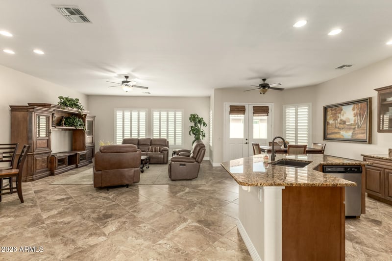 Listing details for 11514 Ocaso Ave, Mesa, AZ 85212 : Exquisite corner-lot home offering a 2-car garage plus a golf cart garage in Sunland Springs Village! Inside, you're welcomed by plantation shutters, tile floors in all the right places, and a bright, inviting living room that feels instantly like home. The kitchen is designed to impress with stainless steel appliances, rich wood cabinetry, granite countertops, a walk-in pantry, and a center island complete with a breakfast bar. Relax in the spacious primary bedroom featuring a chic bathroom with dual vanities, a glass block shower wall, and a walk-in closet. Double doors lead to a versatile den. Outside, enjoy a serene backyard with a covered patio, perfect for unwinding or hosting gatherings. Enjoy Pickleball, Tennis, Wood Working, Golf, an so much more!!