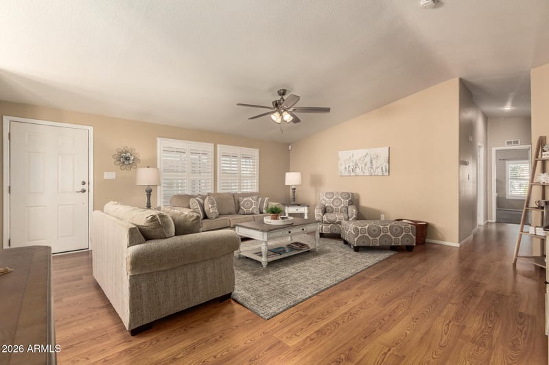Listing details for 11596 Sierra Dawn Blvd #202, Surprise, AZ 85378 : MOVE-IN READY IN PRIME SURPRISE LOCATION! Welcome to this well-maintained home in a desirable 55+ community offering comfort, convenience, and value. Enjoy an open, light-filled layout, functional kitchen, and spacious bedrooms with walk in closets and ample storage. Relax on the covered patio or take advantage of community amenities including a heated pool, sauna and clubhouse. Located near shopping, dining, medical facilities, and easy freeway access. Low-maintenance living at its best—perfect for a seasonal retreat or full-time residence. Don't miss this opportunity!