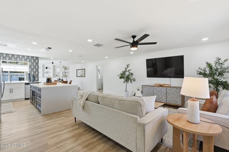 Listing details for 11608 32nd Pl, Phoenix, AZ 85028 : Remodeled home in a great location near Shea and the 51, conveniently close to freeway access. Walk or bike to local restaurants, shopping, and hiking trails. Natural desert landscaping and midcentury-style architecture give this home great curb appeal. Large great room with an open floor plan and kitchen island. Three bedrooms and two bathrooms have been tastefully updated. Glass sliding doors lead to a large patio, real grass backyard, and private diving pool. Mature palms and a saguaro complete the backyard. Owned solar panels. Desirable area close to the new Paradise Valley Mall and Dreamy Draw hiking trails.