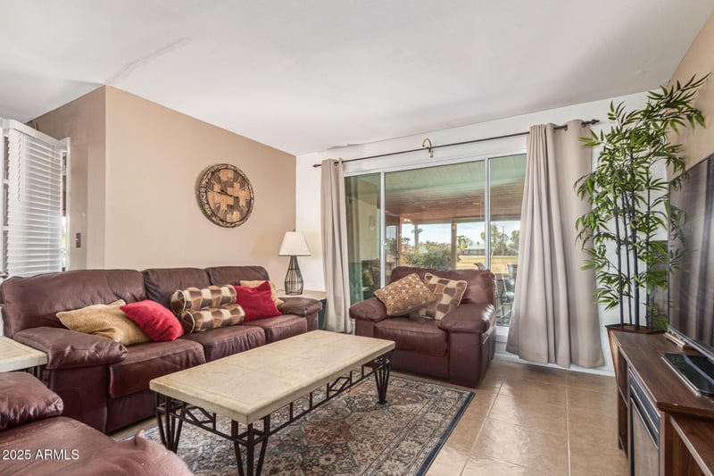 Listing details for 11632 Balboa Dr, Sun City, AZ 85351 : Experience the best of Sun City! This inviting 3-bedroom home offers a bright and serene living room with a soothing color palette and tile flooring for easy care. A cozy family room provides the perfect space for relaxing or spending quality time. The eat-in kitchen is thoughtfully designed with granite countertops, white cabinetry with crown molding, pendant lighting, a tile backsplash, stainless steel appliances, and a peninsula with a breakfast bar—ideal for casual dining and entertaining. The spacious primary bedroom features soft carpeting and a private bathroom for added comfort. The Arizona room has been fully finished, creating additional versatile living space. Step outside to the covered patio while taking in tranquil golf course views. Don't forget the abundance of amenities!