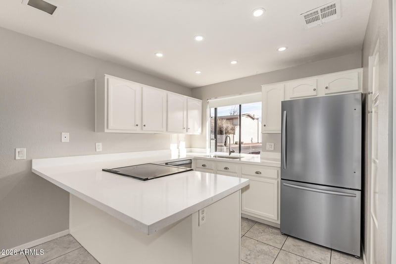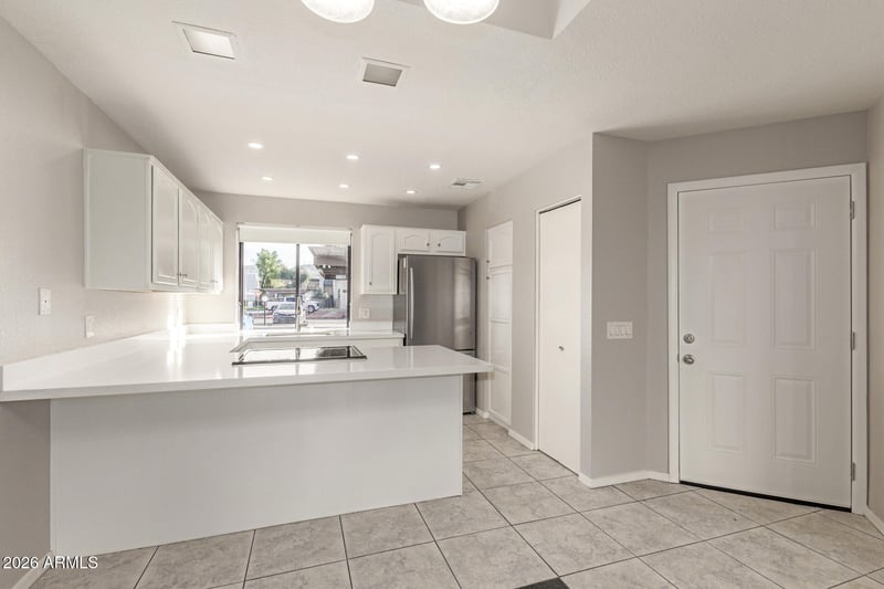 Listing details for 11666 28th Dr #120, Phoenix, AZ 85029 : Seller Financing Available to primary buyers only. Experience modern living in Woodlake Condominiums! This charming unit features a spacious great room with high ceilings, a soothing color palette, and durable tile flooring. The remodeled kitchen (2025) shines with quartz countertops, white cabinetry with crown moulding, recessed lighting, stainless steel appliances, a pantry, and a peninsula breakfast bar. The primary bedroom offers direct patio access, an ensuite with double sinks, and a walk-in closet. A new HVAC system installed in 2025 adds comfort and efficiency. Enjoy a covered patio perfect for relaxing. Conveniently located near schools, parks, lake views, shopping, dining, and transportation. Move-in ready!