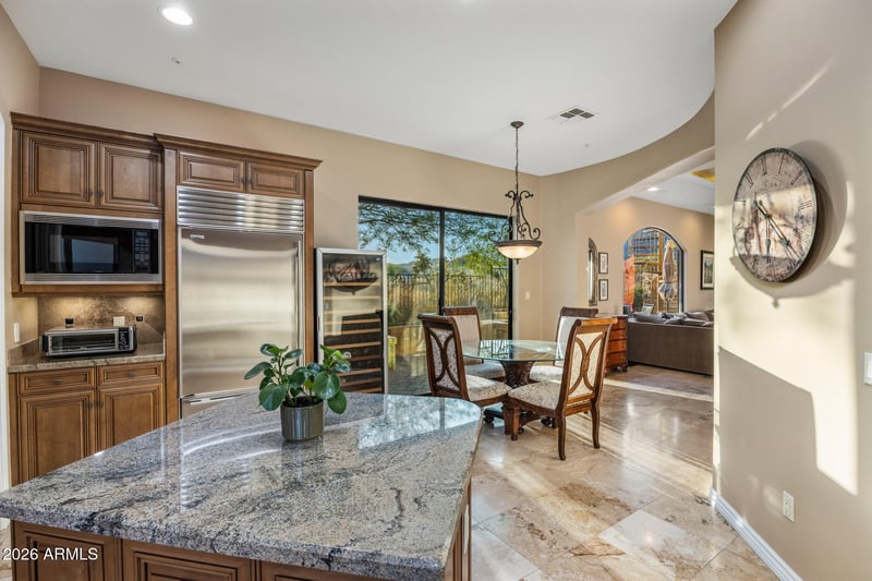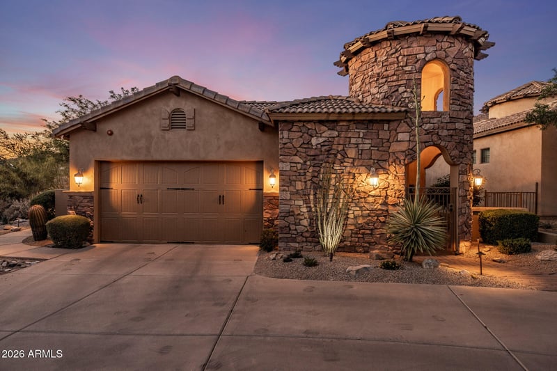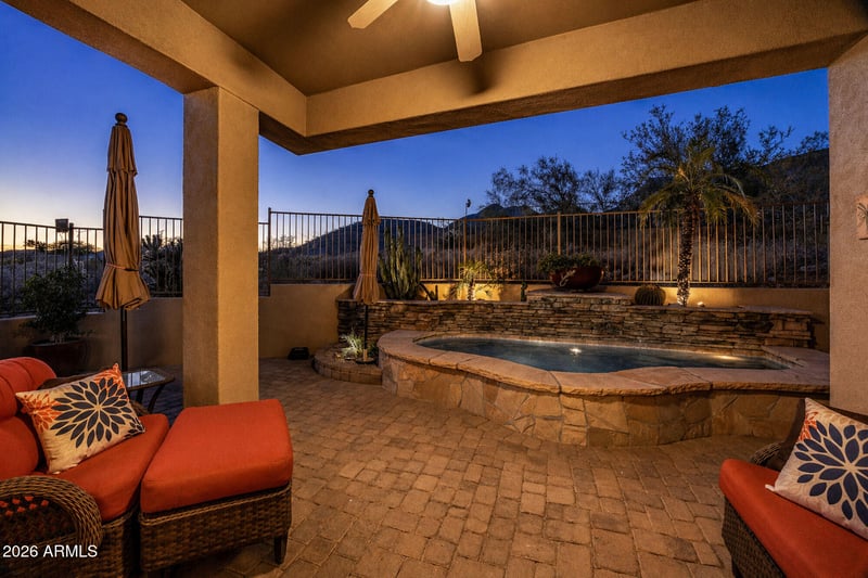 Listing details for 11758 134th St, Scottsdale, AZ 85259 : Privately positioned at the end of a quiet cul-de-sac within an exclusive gated enclave of just 20 semi-custom residences, just moments from the world-renowned Mayo Clinic, premier Scottsdale conveniences and top-rated schools including BASIS & Cheyenne, this spacious villa with casita offers a rare blend of seclusion, views and city access. Tucked into a premium back-corner homesite, the property captures breathtaking mountain, desert, and sparkling city light views from multiple vantage points, creating a serene, elevated sense of privacy and connection to the surrounding Sonoran landscape. Warm, timeless interiors reflect classic character paired with modern livability. The chef's kitchen is both functional and inviting, featuring rich wood cabinetry, granite counters, a Viking range and generous center island - opening seamlessly to the main living areas for easy entertaining. Natural light fills the home, while expansive windows and sliding glass doors frame the desert backdrop and invite indoor/outdoor living. The great room offers a comfortable yet refined gathering space, highlighted by a tray ceiling with soft ambient lighting and direct access to the patio. The primary suite provides a private retreat with patio access, abundant natural light and a well-appointed bath, while additional guest bedrooms and casita with separate entrance offer flexibility for visitors, a home office or multi-generational living. Updated and meticulously maintained, the home offers meaningful system and lifestyle upgrades, including newer HVACs, Ecobee smart thermostats, Sonos whole house music system, new automated solar screen system and more. Designed for both relaxation and entertaining, the outdoor living is complete with a built-in barbeque, firepit, and spool for year-round enjoyment, all set against a backdrop of natural desert and mountain views. An elevated expansive view deck delivers sweeping panoramic vistas of surrounding mountains and twinkling city lights. Ideally located and thoughtfully designed, this residence offers refined desert living in a highly sought-after, private setting where views, tranquility and convenience come together seamlessly.