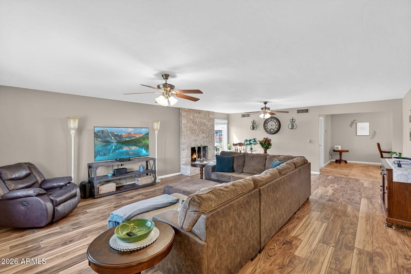 Listing details for 1198 Dublin St, Chandler, AZ 85224 : Well-maintained 3-bedroom, 2-bath home with approximately 2,080 sq ft in a desirable Chandler location. Features include a spacious floor plan, wood-burning fireplace with stone accent, and a kitchen with granite countertops and ample cabinetry. The original 4th bedroom has been converted into an oversized walk-in closet for the primary suite. Additional highlights include a large laundry/storage room and durable flooring in main living areas. Backyard offers a private pool, above-ground spa, propane firepit, low-maintenance landscaping and not 1 but 2 RV gates! Conveniently located near Chandler Fashion Mall, Downtown Chandler, parks, and easy access to both 202 and 101 freeways!