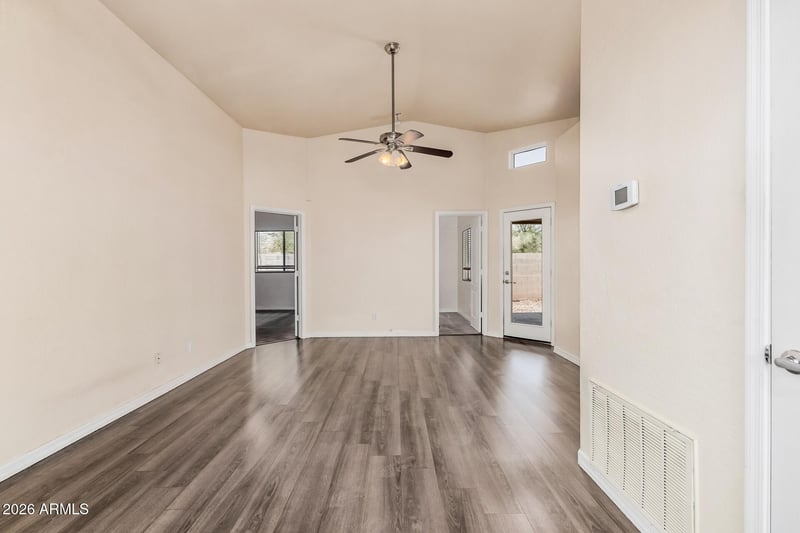 Listing details for 120 Warren St, Mesa, AZ 85207 : Charming single-level home in the gated community of Lost Dutchman Villas with beautiful mountain views. This 3 bed, 2 bath bungalow features vaulted ceilings, wood flooring, and granite kitchen countertops, creating a bright and functional living space. Unique enclosed carport with garage door adds flexibility for parking or storage. Enjoy low-maintenance living with HOA-maintained front yard plus access to community pool and clubhouse, all in a quiet Mesa location near shopping, freeways, and outdoor recreation.