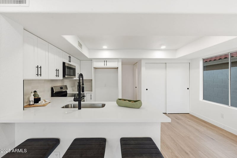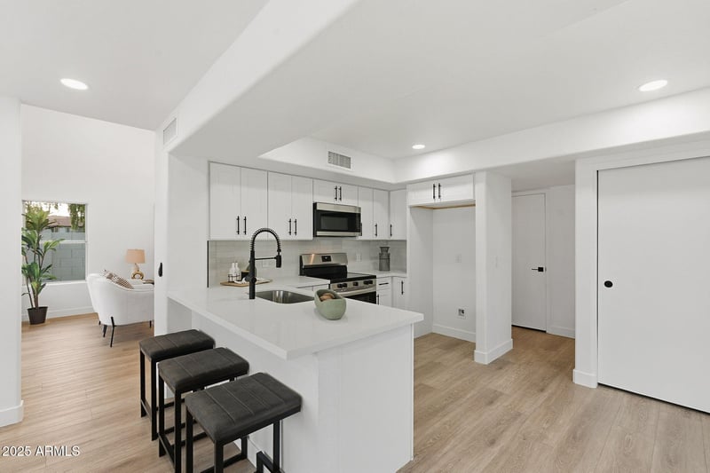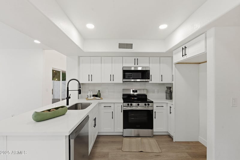 Listing details for 1203 Muriel Dr, Phoenix, AZ 85022 : STUNNING REMODEL ALERT!! DESIGNER GRADE! LUXURY FINISHES! WOW! NEW! NEW! NEW! Home features refinished pebble tec pool! 3 bedrooms, 3 bathrooms and ALL the luxury finishes at a price point you can afford! No detail missed on this one. NEW custom metal stair rail with beautiful luxury vinyl plank stair risers. NEW interior/ exterior modern paint scheme, new landscape package, all new designer kitchen with soft close cabinetry, brand new luxury vinyl plank flooring, new high baseboards, all new fans, faucets, fixtures + so much more. Accent walls galore! This is the one! A true entertainer's house. NEW TURF! WOW! Always priced to sell, show today before it's gone.