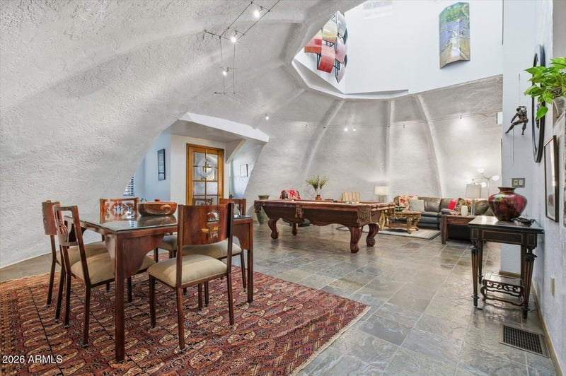 Listing details for 12054 Tonalea Dr, Phoenix, AZ 85044 : One of a kind exceptional, efficient, serene sanctuary, nestled in the scenic mountain-graced Ahwatukee Equestrian Estates! Restore your soul & be inspired as you feel the soothing energy inside of this earth-bermed beauty with elegantly curved concrete walls that create a tranquil haven. This energy efficient earth-insulated concrete dome structure keeps you safe, secure, comfortable & feeling calm while lowering your utility bills. Lovely natural light flows through the living spaces from the Cupola above.. Several updates in the home, including the kitchen & primary bath. Delightful indoor/outdoor living with inviting garden patios & very spacious backyard with mountain views. Community bridal path & horse arena. Live happily with the desirable Ahwatukee amenities & lifestyle! This earth sheltered dome construction home is uniquely enticing! Good energy here! Serene sanctuary! Valuable, higher cost earth sheltered design compared to conventional construction. Lower cost utility bills. Owner's description of dome construction 12054 S. Tonalea Dr Phoenix, AZ 85044 DOME OUTSIDE WALL CONSTRUCTION " Curved I-Beams are bolted to the foundation and cupola ring " Burlap/wire mesh is attached to the curved I-Beams " 3 miles of rebar are attached to the outside curved beams/ burlap wire mesh on 1 foot centers " Gunite/Shotcrete is applied to the outside of the dome. 4000 psi. 4-6 inches thick " After concrete cures, waterproofing is applied to all exposed surfaces Ahwatukee has amenities galore! Golf courses, parks, hiking and outdoor activities, good schools, plentiful mountain vistas, excellent dining options, entertainment, resort access, nearby Community Center and Rec. Center options , community activities, smaller town feel with everything that you need to live happily! Easy access to freeway connections.