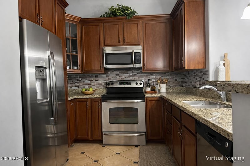Listing details for 121 California St #29, Chandler, AZ 85225 : Live steps from San Marcos Resort, Golf Course & Downtown Chandler in this beautifully maintained townhome with a front patio and unbeatable walkability. The main living spaces are upstairs, featuring LVP flooring, an open great room, dining area, and a well-appointed kitchen with granite counters, stainless steel appliances, tall cabinetry, and a breakfast bar. A downstairs bedroom and bath offer flexibility for guests or home office use. Enjoy plantation shutters, upgraded bathrooms, and a private patio perfect for morning coffee. Ask your REALTOR® for the full photo package, 3D tour, and custom video to experience everything this home has to offer. Location & Lifestyle " Directly across from San Marcos Resort & Golf Course " Walkable to Downtown Chandler, dining, shopping, and entertainment " Close to schools, parks, and major freeways " Front patio offers a shaded, private outdoor retreat Floor Plan & Living Spaces " Approx. 1,309 sq ft, built in 2007 " Downstairs bedroom & full bath  ideal for guests, office, or multi-gen living " Main living area upstairs for added privacy and natural light " Luxury vinyl plank flooring throughout main living areas " Dining area with chandelier and open great-room feel Kitchen " Granite countertops " Stainless steel appliances " GE refrigerator, dishwasher, microwave, and glass-top range " Tile flooring with accent detail " Breakfast bar and generous cabinet storage Bedrooms & Bathrooms " Spacious primary suite with walk-in closet " Upgraded primary bath with double sinks and large walk-in shower " Secondary upstairs bath with vessel sink and modern finishes " Granite countertops and updated fixtures throughout Additional Features " Two-car garage with epoxy flooring " Laundry room with LG washer & dryer " Extra storage, including deep under-stair closet " Plantation shutters and ceiling fans " Well-maintained mechanicals Selling Highlights " Ideal for first-time buyers, downsizers, or downtown lifestyle seekers " Low-maintenance living in a highly desirable Chandler location