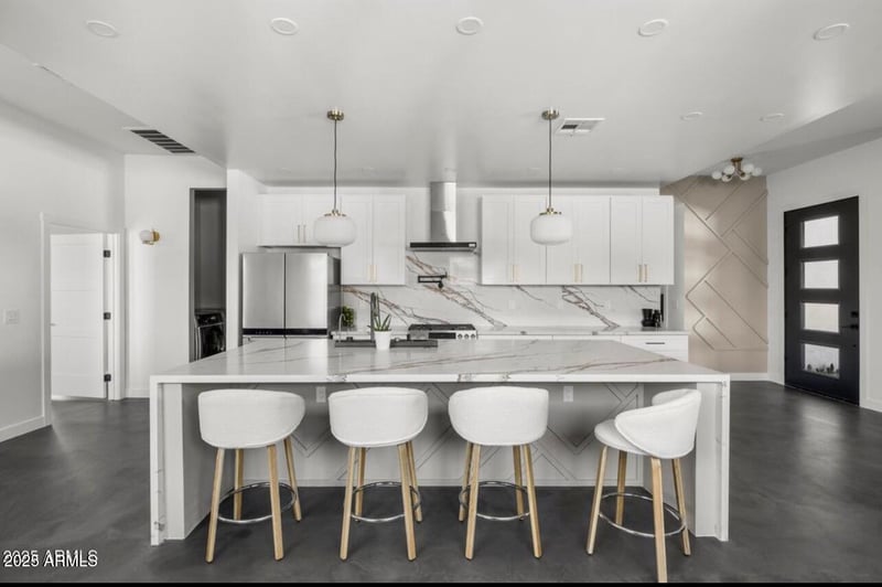 Listing details for 1211 Hayward Ave, Phoenix, AZ 85020 : Brand new build in 2025 from the ground up including recently added modern Guest Casita. This entire home features new framing, plumbing, electrical & sewer lines. Brand new windows & HVAC. New roof & all new spray foam insulation! No HOA! This is an absolute stunning modern contemporary design with 3 bedrooms, 2 bathrooms in the main house & 1 large bedroom 1 full bath in the Guest Casita. Welcoming you as you enter is a split floor plan that is sure to please. Soaring ceilings, open concept kitchen with large quartz waterfall edge island along with quartz countertops. Plenty of cabinets along with a huge walk in pantry for optimal storage. Brand new SS appliances, pendant lighting & electric smart toilets,. Beautiful epoxy flooring throughout!! Large walk in master closet. The brand new recently added permitted Guest Casita is a tremendous addition carefully thought out. Equipped with gorgeous white oak cabinets, open concept kitchen with island overlooking the living room, quartz countertops, modern lighting, electric fireplace, instant hot water and Stainless Steel appliances with gas slide in range. Huge bedroom that fits a California King bed very comfortably. Inside washer and dryer a huge plus!! This Casita can easily be a source of income to rent or use for a short term rental to generate some great income. Outside features a variety of seating spaces with endless configuration options. The thoughtful integration of steel structures, concrete and the stucco finish creates a stunning and visually appealing exterior. Parking is plentiful, 4 slab spaces & a covered carport await. This entire home is must see!!