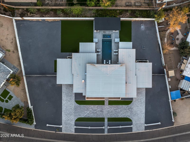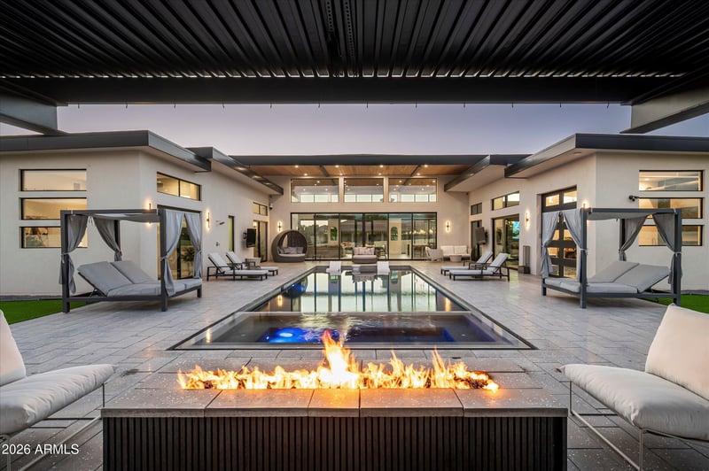 Listing details for 12209 65th Pl, Scottsdale, AZ 85254 : Built in 2023 and enhanced with extensive upgrades, this modern yet inviting residence sits on just under an acre and features a desirable split floor plan with two versatile flex rooms. The chef's kitchen is equipped with Wolf and Sub-Zero appliances, while a full Control4 smart home system provides seamless automation of shades, lighting, audio, security, and climate throughout the home. The resort-style backyard is designed for entertaining with a heated pool and spa, separate pool bath with convenient exterior access, a pergola with misters and a built-in grill, and a pool bar tucked behind a garage door for effortless indoor/outdoor living. An oversized 4-car garage offers ample storage, while the expansive lot provides room to add an RV garage, guest house, or pickleball court.