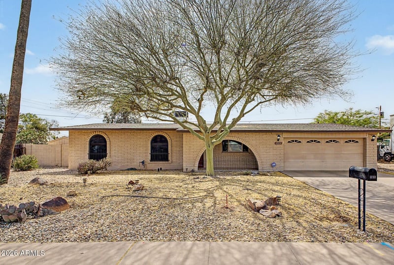 Listing details for 1222 25th St, Mesa, AZ 85213 : You don't want to miss this one! Well-maintained 3 bed, 2 bath Mesa home on a large ¼-acre lot with over $77,000 in improvements. Interior features include: Open Living areas filled with Natural Light, a Spacious Dining area, Large inside Laundry Room, Updated Flooring, Fixtures, and an Updated Primary Bathroom. Roof replaced in 2023 adds peace of mind. The Expansive Backyard offers a Covered Patio, Exterior Storage Room, and ample space with potential for a Pool, RV Gate, or future expansion. No HOA provides flexibility for use and personalization. Conveniently located near shopping, dining, parks, and freeway access.
