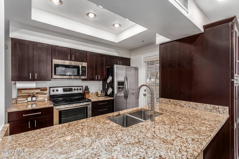 Listing details for 1222 Baseline Rd #145, Tempe, AZ 85283 : Discover comfort, convenience, and rare privacy in this beautifully maintained, ground-level corner townhome, tucked away at the back of the community with maximum tranquility.
