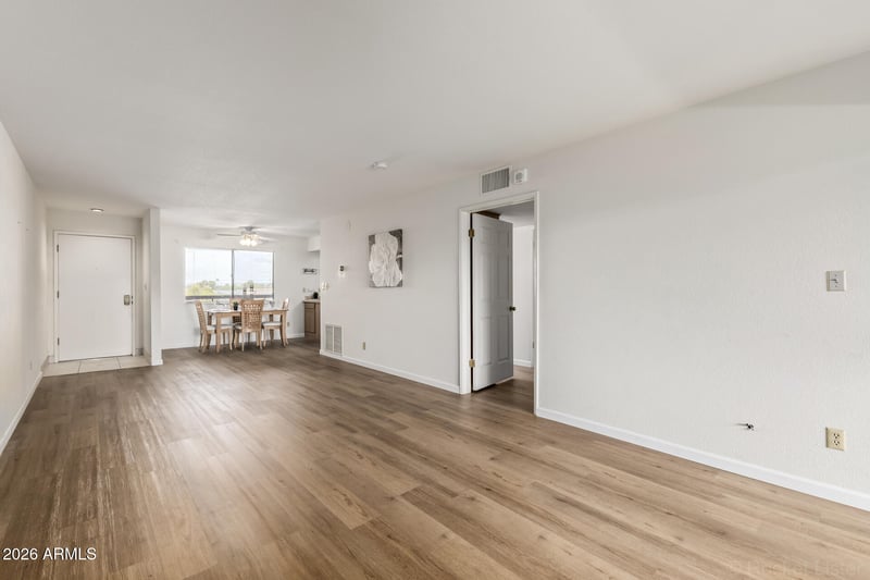 Listing details for 12222 Paradise Village Pw #440, Phoenix, AZ 85032 : Check out this delightful top-floor unit in the sought-after Anasazi! Fantastic location close to golfing, restaurants, shopping, and the freeway! Inside, you'll find a bright and open layout with wood-look flooring and neutral paint waiting for your personal touch. Whip up your signature dishes in the well-appointed kitchen, complete with oak cabinetry, a spacious peninsula, and built-in essentials. Ideal for those seeking comfortable and easy-maintenance living, this gem boasts 1 bedroom with an ensuite with double sinks, a walk-in closet for effortless organization, and direct access to the balcony, where you can enjoy a refreshing drink and relax. Discover everything this community has to offer, including the pool, spa, and clubhouse! Welcome home!