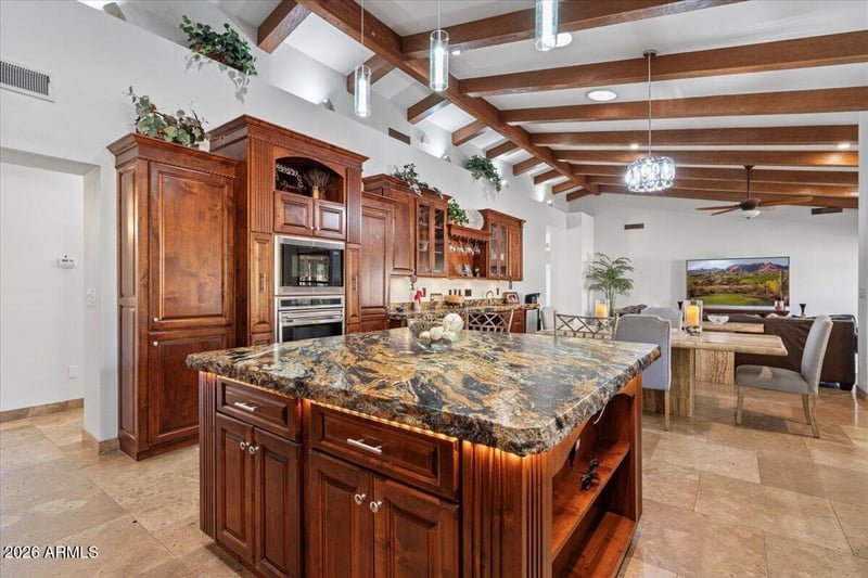 Listing details for 12234 Yaki Ct, Phoenix, AZ 85044 : Sprawling single story custom estate 4,000 sq ft, 5 bedrooms/5 baths, cul-de-sac lot providing a sense of privacy and exclusivity. Thoughtfully designed floorplan provides both communal gathering spaces and completely private living quarters with multi-generational living ensuite or executive office with separate entrance. The heart of the home boasts high-end appliances, an oversized island, wet bar, custom cabinets, granite, expansive family room, and 2 ensuite bdr. A separate large, dedicated room offers a media room/workout facility or playroom. The resort-style backyard oasis boasts a sparkling pool complete with a rock waterfall/slide, built-in BBQ, fireplace, spacious areas. Solar tubes for natural light. Views of So Mountain with access to trails/hiking/biking/A+ schools/shopping.