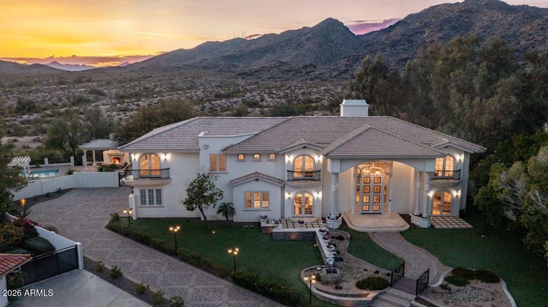 Listing details for 12240 Honah Lee Ct, Phoenix, AZ 85044 : A true statement of luxury, craftsmanship, and vision, this extraordinary Ahwatukee Foothills estate has undergone an almost $1,000,000 state-of-the-art modern renovation that touches every inch of the property. Designed with uncompromising attention to detail, this one-of-a-kind residence delivers immense luxury, refined functionality, and exceptional flexibility for multigenerational living. Set on a premium preserve lot at the end of a quiet cul-de-sac, the home offers expansive living spaces curated for both grand-scale entertaining and everyday comfort. Multiple living areas provide separation and privacy, while thoughtful design elements throughout create a seamless sense of flow and connection. Elegant entry with custom 10-foot designer door that leads to exquisite split rail staircase. Adjacent to entry are two custom wine closets with glass doors. At the heart of the home is a fully updated kitchen and kitchenette, each appointed with custom cabinetry, quartz countertops, modern appliances, and elevated finishes--perfectly suited for extended family, guest quarters, or independent living arrangements. Living spaces are enhanced with new flooring, crown molding, custom built-ins, and designer lighting, creating a sophisticated yet welcoming atmosphere. Open concept with family adjacent to kitchen with beautiful fireplace and French doors to the rear yard with pristine south mountain views. A fully customized private theater room showcases bespoke millwork, integrated lighting, and built-in cabinetry, offering an immersive entertainment experience. A designer wet bar with statement backsplash, stone surfaces, and beverage refrigeration further elevates the home's entertaining capabilities. Formal living room and dining all with custom French doors to showcase the incredible views. Gorgeous master retreat with multiple custom French door that lead to an expansive covered balcony with vast views of this private South Mountain location. New electric fireplace, custom walk-in closet and remodeled spa like master bath. Guest quarters include a kitchenette, dining area, great room, full bath, bedroom and access to the upper view balcony with separate entrance and access to back yard. Four other good size secondary bedrooms and two full baths completely remodeled. Additional rooms are powder room and remodeled laundry room with pet shower.