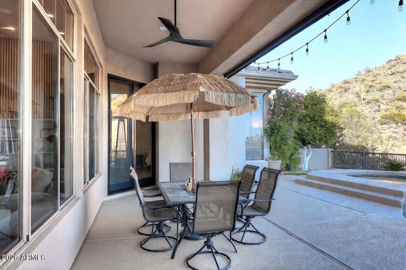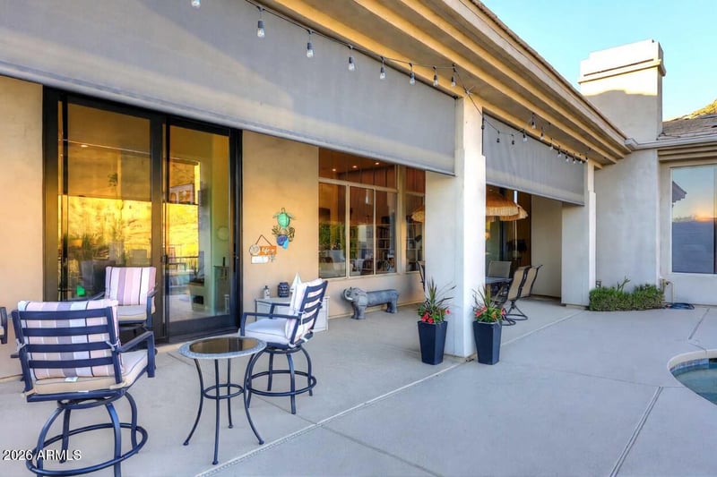 Listing details for 12343 129th Pl, Scottsdale, AZ 85259 : Resort living in prestigious guard-gated Scottsdale Mountain with jaw-dropping mountain views, sparkling pebble-tec pool, elevated spa with waterfalls, and a large covered patio for year-round indoor/outdoor living. Inside, soaring 12-foot ceilings, abundant natural light, and wood floors create a bright modern feel anchored by dual fireplaces and open living, dining, and family room--ideal for entertaining. The updated chef's kitchen offers granite counters, wrap-around island with seating, gas cooktop, wall ovens, and plentiful cabinetry. A luxurious primary retreat with sitting area and views, spa-style bath, custom closet, two additional bedrooms, stylish hall bath, great storage, and 2.5-car garage complete this move-in ready desert oasis.
