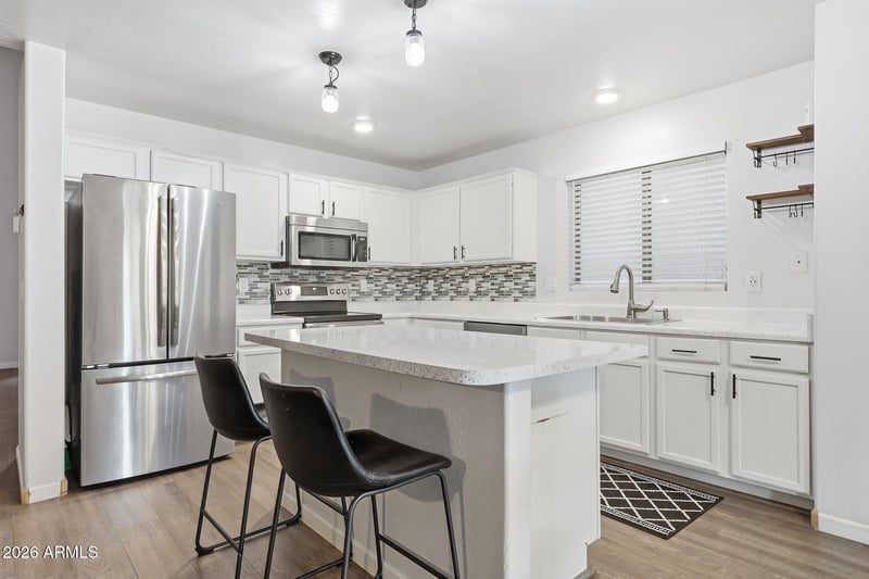 Listing details for 12374 Turney Ave, Avondale, AZ 85392 : Come see this beautiful 4bedroom, 3 bath, move-in ready home in Rio Crossing! Enjoy an open-concept layout with updated flooring, a refreshed kitchen featuring stainless steel appliances and a large island, overlooking the great room, perfect for entertaining. This home also features, beautifully updated bathrooms and flooring. The spacious primary suite offers a relaxing retreat with walk in shower, dual vanities, walk in closet with custom storage while the secondary bedrooms provide flexibility for guests, work, or play. Step outside to a low-maintenance backyard with artificial turf and a covered patio, perfect for relaxing or hosting gatherings. Conveniently located near shopping, dining, parks, and freeway access. This one is just missing your personal touch!