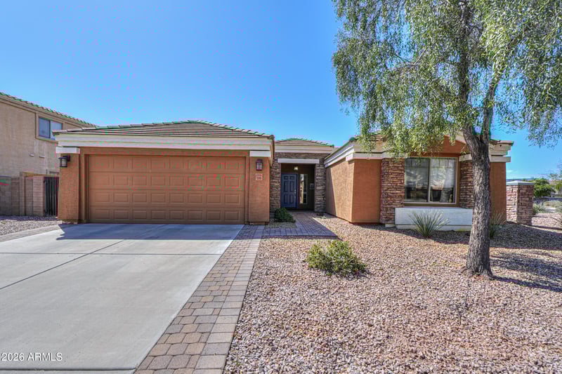 Listing details for 1243 Castle Dr, Casa Grande, AZ 85122 : Beautiful open concept 3 bd 2 ba home in Avalon. The kitchen boasts all stainless steal appliances and a large kitchen island space. Spacious kitchen and living room with vaulted ceilings and bay window. This split floorplan home is move in ready. Epoxied garage floor. Fall in love with the serene backyard with pavers, turf grass and spa nestled under the pergola. Separate slab with pavers leading to it if someone wanted to place a shed there.