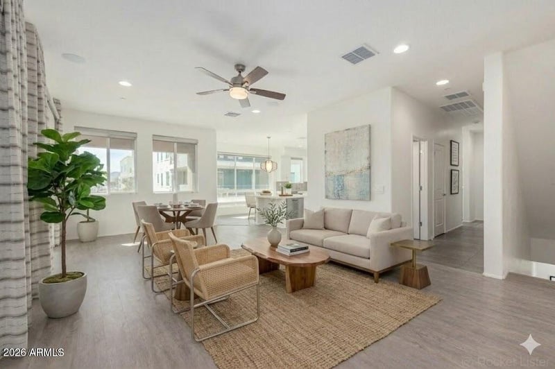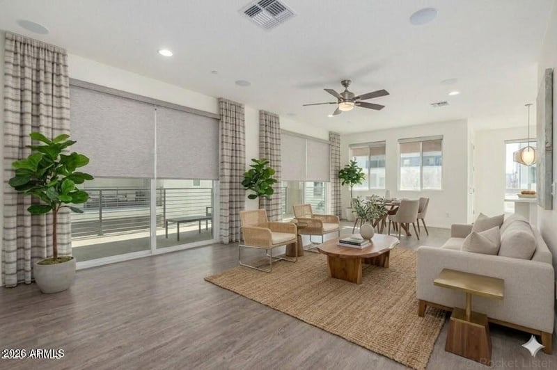 Listing details for 1250 Abbey Ln #209, Chandler, AZ 85226 : Experience Elevated Living in Rhythm. 6 months prepaid HOA fees with acceptable offer. This premier tri-level corner unit defines modern luxury in Chandler. Extensively reimagined with over $50K in designer upgrades, the interior showcases new wide-plank vinyl flooring, bespoke wall coverings, and motorized shades. The chef-inspired kitchen features granite countertops and premium appliances, all of which convey. Retreat to expansive, two-level wraparound balconies for breathtaking So. Mountain sunset views. This move-in-ready 2BR/2.5BA gem includes an epoxy-floored garage, water softener, full security system. Resort-style gated enclave near the Tech Corridor, enjoy 1st class amenities including lap pools, a fitness center, and a dog park. This isn't just a home; it's a destination.