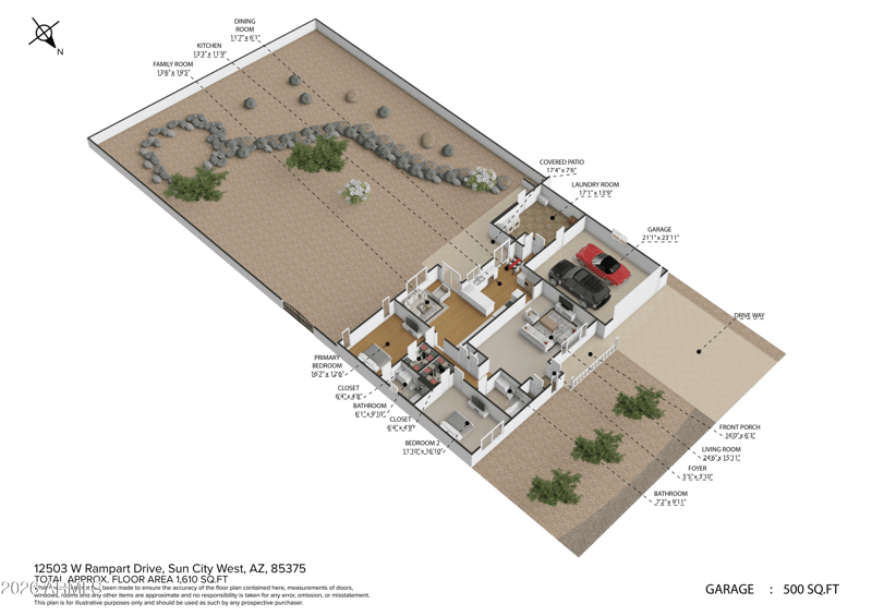 Listing details for 12503 Rampart Dr, Sun City West, AZ 85375 : Welcome to this well-kept Sun City West home with great curb appeal, low-maintenance desert landscaping, and a covered front patio. Inside, you'll find a spacious layout with a large living area, generous kitchen with plenty of cabinet and counter space, and flexible space off the kitchen for everyday dining. The additional family room with built-ins gives you extra room for relaxing, hobbies, or entertaining. The primary suite offers room to spread out along with a walk-in closet and ensuite bath. Oversized laundry room with extra storage and workspace, plus a large garage with room for more than just your cars. Out back, the covered patio opens to a wide backyard with plenty of space to enjoy the Arizona sunshine. All in desirable Sun City West with access to golf & recreation centers. The fully fenced, exra-large 1/4 acre lot is extra private and plenty of room for a private pool. There is an RV gate that is a great bonus, and a rare find in Sun City West. Sun City West offers a plethora of clubs, pools, pickleball and anything your heart could desire in this dynamic, Active Adult Community. Don't pass on this excellent opportunity!