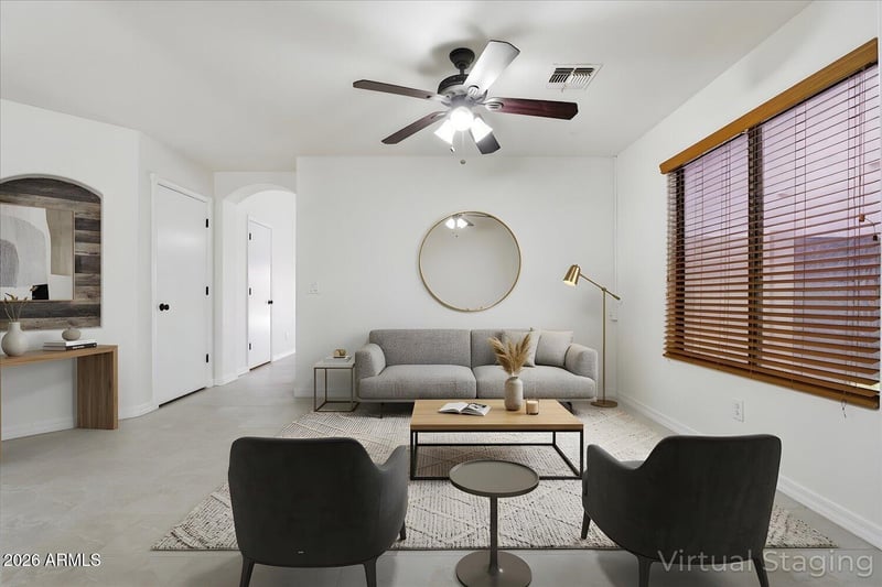 Listing details for 12527 Windsor Blvd, Litchfield Park, AZ 85340 : Fall in love with this beautifully renovated 3-bedroom, 2-bath home plus a versatile den! Featuring a 2-car garage and thoughtfully updated finishes throughout, this home offers both style and functionality.
