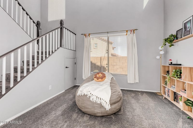 Listing details for 12538 Miner Trl, Peoria, AZ 85383 : Your dream home is here! This delightful 4-bedroom residence welcomes you with a 3-car garage and a low-maintenance front yard. The inviting foyer leads to the living room with soaring ceilings, abundant natural light, and soft carpeting underfoot. Gather loved ones in the family room, complete with a cozy fireplace for relaxing evenings. The gourmet kitchen comes with granite counters, crisp white cabinetry with crown moulding, stainless steel appliances, a handy pantry, a center island with butcher's block counters, and a peninsula with a breakfast bar for casual meals. Adjacent, you'll find a den ideal for an office or study. Upstairs, you'll find a loft and a flex room that provides additional living space. Double doors lead to the primary bedroom, showcasing a private bathroom with double sinks and a walk-in closet. Imagine peaceful afternoons in the sizeable backyard, boasting a covered patio, stylish pavers, pristine artificial turf, and a sparkling pool for refreshing dips on hot summer days. Make this gem yours today!