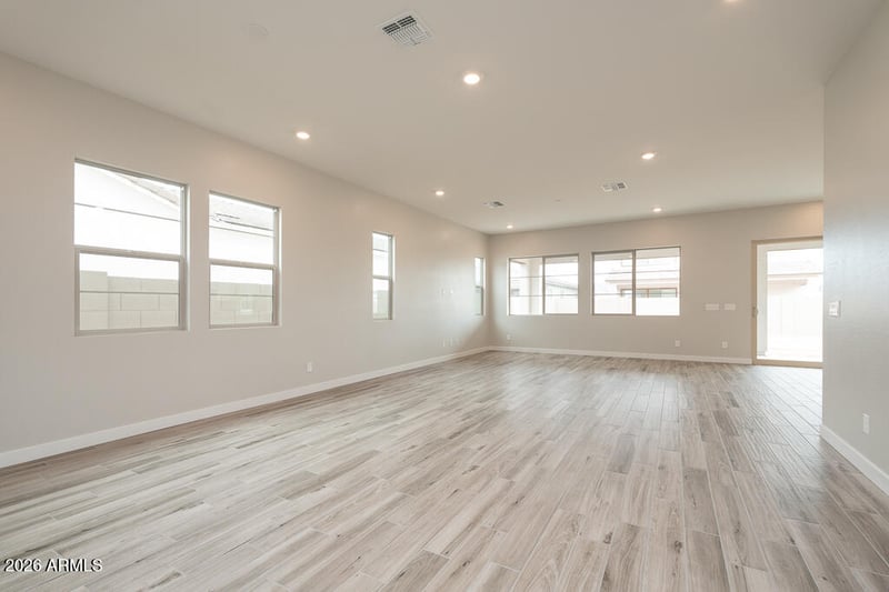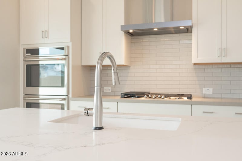 Listing details for 1254 Prescott St, Gilbert, AZ 85298 : Stunning two-story home featuring 5 bedrooms, 3.5 baths, and a 3-bay tandem garage. The gourmet kitchen shines with Diamond Collection Bryant hardwood cabinets in Steam, quartz countertops, stainless appliances, gas cooktop, double oven, microwave, and dishwasher. Enjoy seamless indoor-outdoor living with a 12' multi-panel sliding glass door opening to a covered patio. Ceramic wood-look plank tile flows throughout main areas. The primary suite offers a frameless walk-in shower. Additional highlights include a laundry sink with cabinets and paver driveway.