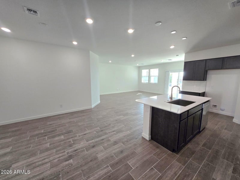 Listing details for 12555 Chase Ln, Avondale, AZ 85323 : QUICK Move-IN! NO Neighbor behind! Backs to greenbelt. Split floorplan gives everyone their privacy and flows seamlessly. Great for large and multi-gen families. Open great room with separate dining area, island breakfast bar, and walk in pantry make this home family-entertainment friendly! Amazing upgrades come with this home including Quartz counters, ALL appliances included, Espresso, soft-close shaker cabinets, wood-like 6x24 tile, and smart home technology! Smart video doorbell, thermostat, front door lock and smart home panel come standard. Del Rio Ranch is in a great location with several parks, walking trails, and nearby shopping just a couple miles south of the I-10 freeway and 10 minutes to Westgate. Back & Front yard desert landscaping done!. Some pics are of model, same plan.