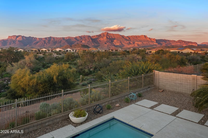 Listing details for 12580 Nandina Pl, Gold Canyon, AZ 85118 : WOW! Location, Location, Location! STUNNING SUNSET & SUPERSTITION MOUNTAIN VIEWS with no homes behind! Built by Gehan Homes in 2019, this FABULOUS 3 Bedroom plus DEN home and 3 CAR TANDEM GARAGE boasts an OPEN FLOOR PLAN with an UPSCALE INTERIOR and custom decorator touches through-out! You'll love the Tile Flooring t/o, BIG GOURMET KITCHEN with Huge Island, Quartz Counters, Built-in Oven & GAS COOKTOP, Updated & Upgraded Primary Bathroom, Acoustic Slat Wood Panel Accents & Much More! ***RARE PREMIUM LOT offers multiple patio seating areas around a PERFECT HEATED POOL overlooking a Beautiful, Deep Desert Wash with Rare DIRECT SUPERSTITION MOUNTAIN VIEWS (inside and out)! Must See! ***Most Furnishings can be included too (negotiable)! ***Welcome Home & get ready to ENJOY ... THE GOLD CANYON LIFESTYLE! *** Peralta Canyon, offers many exciting amenities, such as horse shoes, bean bag toss, outdoor fire pit, pickle ball, bocce ball, playgrounds and plenty of green space to relax, take a walk and enjoy! This community invites families and winter visitors of every type to explore the natural beauty in nearby Peralta Trails Regional Park, great for walking and hiking! ***Conveniently Located, close to WORLD CLASS HIKING and Gold Canyon Golf Resort, which offers two 18-hole Championship golf courses (Dinosaur Mountain and Sidewinder) and Expansive PATIO DINING with amazing golf and mountain views! ***Nature lovers will ENJOY the nearby 2.9 million acres of Tonto National Forest wilderness, hiking, off-road trails plus four beautiful, pristine lakes too! Conveniently located just 35 minutes from Sky Harbor Airport and 20 minutes from Mesa Gateway Airport and San Tan Village Shopping & Dining! ***You'll LOVE GOLD CANYON!
