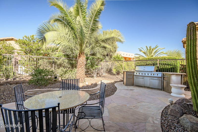 Listing details for 12588 Maya Way, Peoria, AZ 85383 : This stunning residence offers a rare sense of warmth, scale, and timeless sophistication. Lovingly maintained by the original owners, the home feels refined yet inviting, with every space thoughtfully designed and beautifully cared for. Soaring 12 foot ceilings, abundant natural light, and rich architectural details create an immediate sense of arrival. Expansive living areas flow seamlessly, ideal for both intimate everyday moments and hosting with ease. Elegant crown molding throughout adds a level of craftsmanship and polish that quietly elevates the entire home. The heart of the home is both functional and beautiful, opening naturally to gathering spaces that invite connection and comfort. A dedicated den offers flexibility for a home office, library, or private retreat. The primary suite is a true sanctuary, spacious, serene, and designed for rest and relaxation. Step outside to a peaceful outdoor setting with multiple patios, perfect for morning coffee, evening conversations, or enjoying Arizona's year-round weather. Mature landscaping and courtyard-style spaces create privacy and a tranquil, resort-like atmosphere. This home is truly move-in ready and is being sold furnished, allowing you to begin enjoying the lifestyle immediately. With recent major system upgrades and immaculate condition throughout, this is a rare opportunity to own a home where quality, care, and elegance are felt in every detail. Inquire today to learn more!