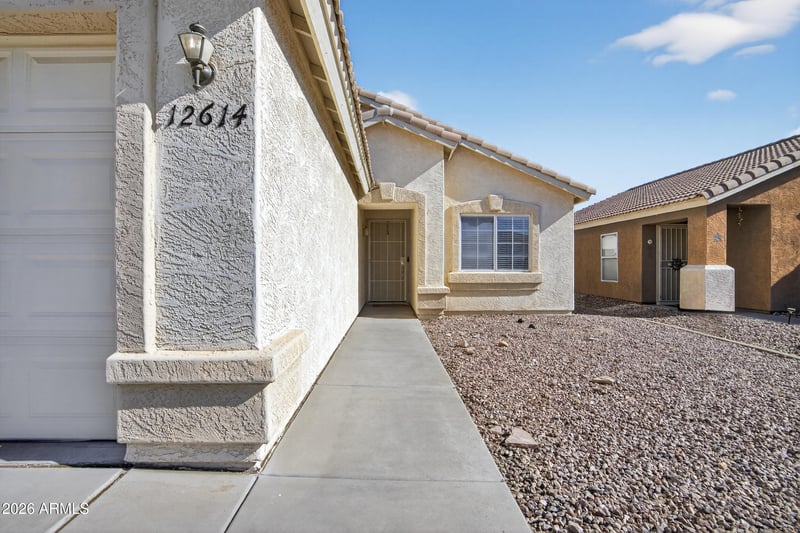 Listing details for 12614 Rosewood Dr, El Mirage, AZ 85335 : Beautiful three-bedroom, two-bath starter home locacted in El Mirage. This move-in ready property features new LVP flooring throughout the kitchen, entry, hall and family room, providing a modern and durable touch. The Kitchen has been refreshed with newly painted cabinets, creating a bright and inviting space. The functional floor plan offers comfortable living with pleanty of natural light. Step outside to a spacious backyard, perfect for kids, pets or entertaining. A great opportunity for first time home buyers or anyone looking for a well-maintained home with stylish updates.